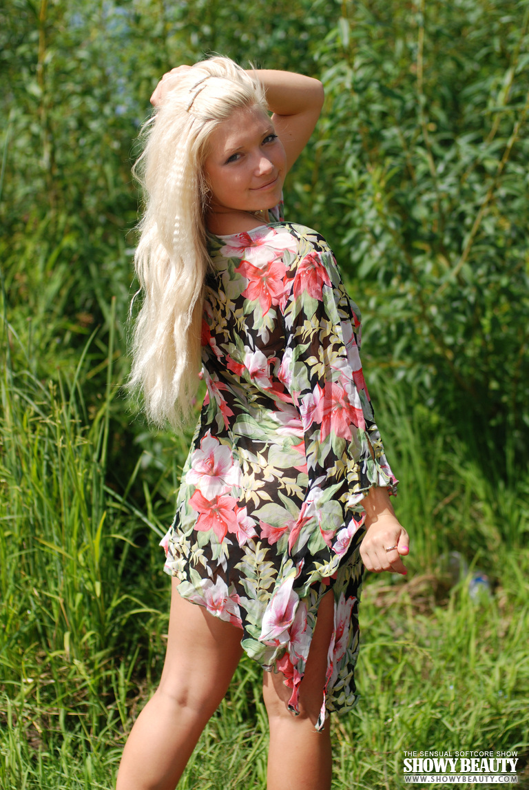 Эротическая фото сессия соблазнительной блондинки у реки